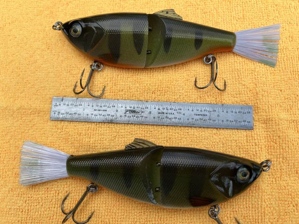 Here are a couple perch baits I did for a buddy. Over 6". Wayyyyyy larger than what I am accustomed to tinkering with so a bit of a challenge, but not bad. The camera's filtering of course has everything much darker than it is in the hand.