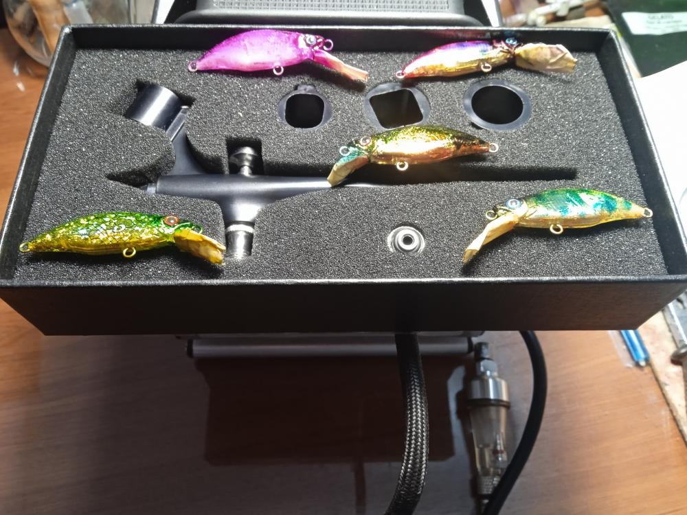 Well, I was already passed to the manual pump Spritzer for alcohol markers - the unique one colour usable for soft baits, if you don't want to use the expensive varnish solvent base - also for my hard plastic blanks.