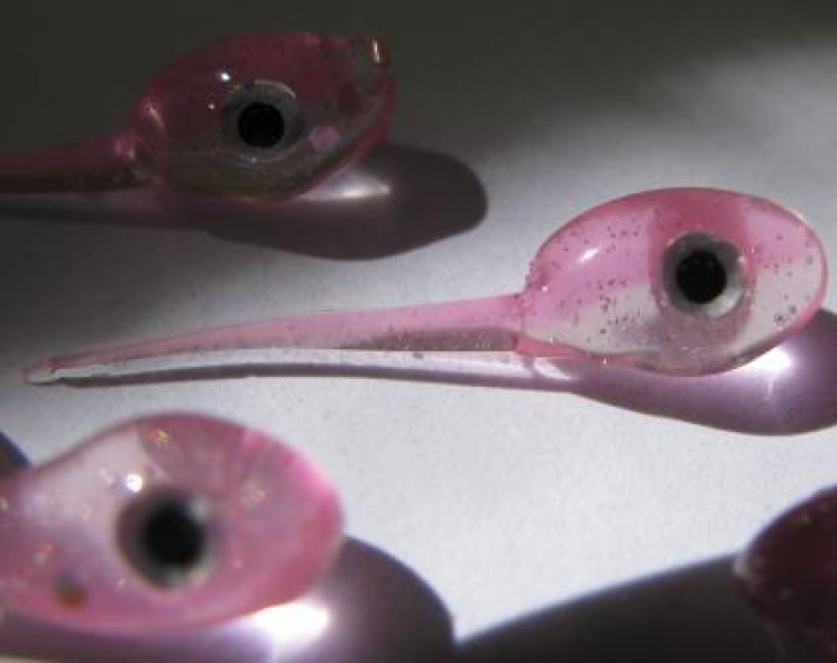 | Description: Pink floro on top with .004 pink glitter, iridescent pearl belly with .035 silver holo Had a few seconds to shoot these and dip now that I have eyes..... Hate I can't get back to this mold but the shad are schooling!!!! ![]() Jim Picture Stats: Views: 2401 Filesize: 19.9kB Posted by: ghostbaits Rating: This picture has not been rated yet.