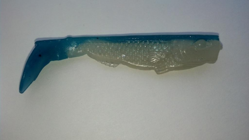 | Description: This is a 3 in swimbait from an old resin mold I made probably 10 years ago. pearl with blue black