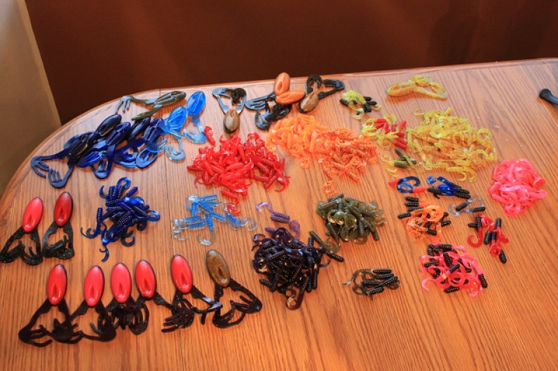 | Description: With the 2 nice warm days we had this week (40s & 50s - warm for WI) I spent some time with my new grub mold from Jacob's. (& my BF toad mold from CCM of course! - not all of the toads are shown here) Played with lots of basic colors and am stocked up for the season. For now. Not the best indoor lighting, hot pink doesn't look so hot, ditto for the flouro orange.