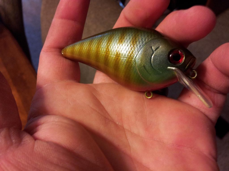 | Description: My 2.5 Drew made me for the lure contest. Awesome color, but don't know if I should throw it. Might get snagged or big momma bass might scuff it with her teeth. I would have to go scuba diving or bass thumping then! Thank you Drew, amazing work. Joey