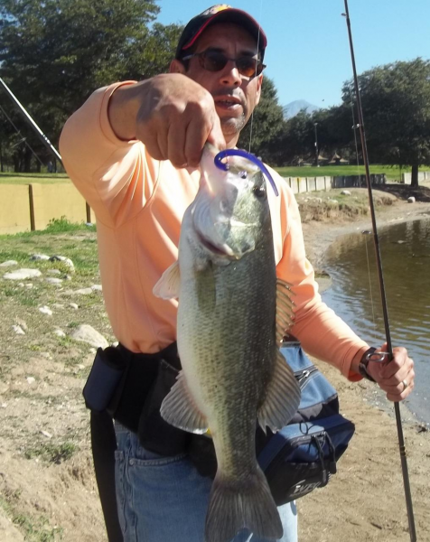| Bass on homemade worm from CC | |||