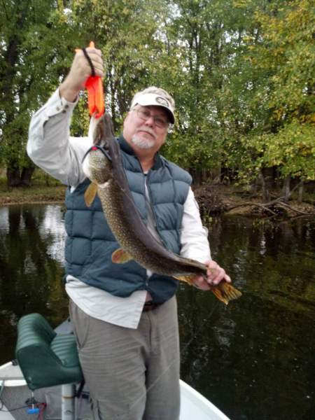 | andrewlamberson | 10/13/11 19:57 UTC 35" Northern Pike on a 6" Carrot fished wacky. About 13lbs.. |