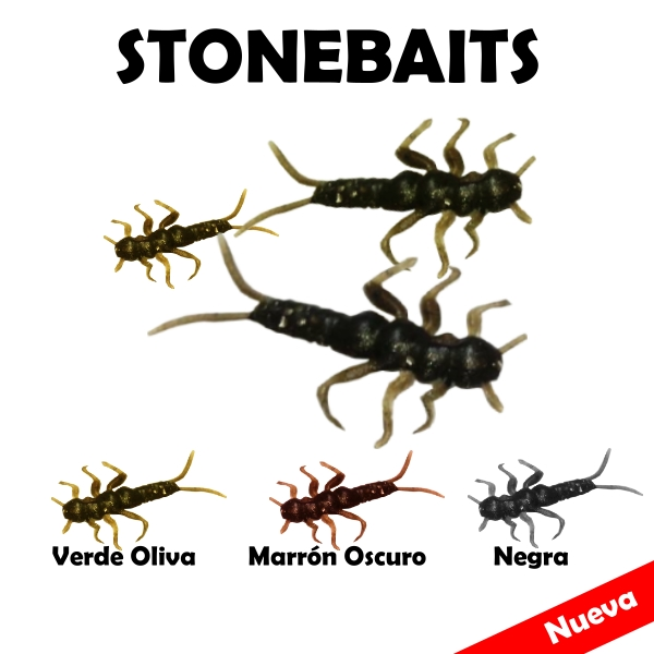 | Description: Las StoneBaits son insectos acuáticos o Ninfas de Plecópteros, suelen vivir gran parte de su vida bajo las piedras en los riachuelos donde las truchas suelen alimentarse de ellos. es muy efectivo para pescar truchas en ríos cordilleranos.