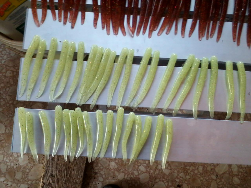 | Description: 2.5 and 3 in crappie carrots.Our take on Rosey red and a home lake favorite Glow with chart. flake.