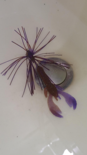 | Description: 1/8 oz. Poison swing jig And 3" 702 in PB&J in the water.