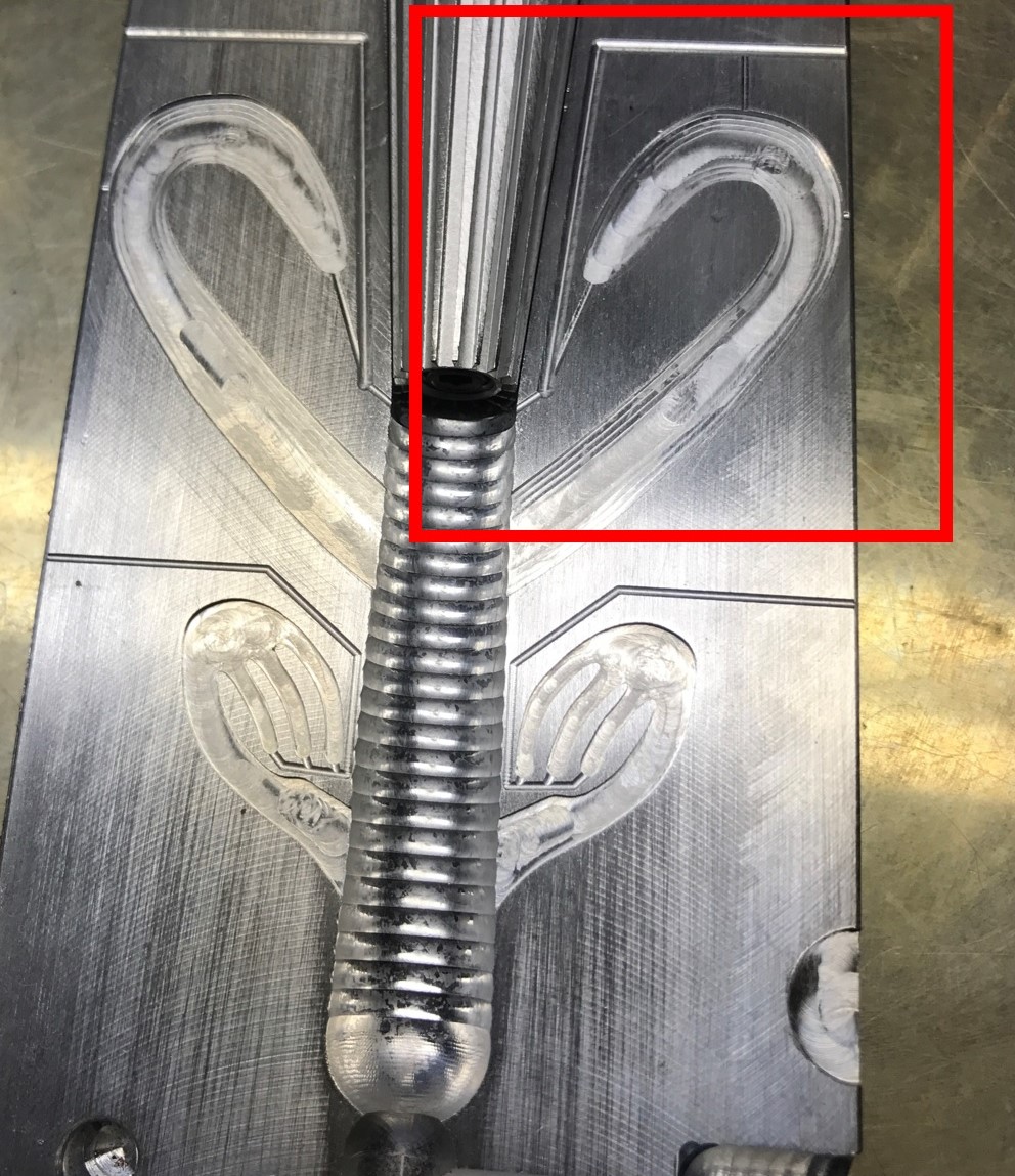 | Description: Location in mold where air pocket is forming; two new molds
