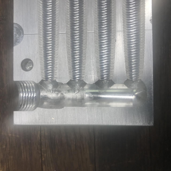 | Description: The sprue and gate have been enlarged and depend to allow better flow of plastic. This modification has increased the effectiveness of the mold. I can now shoot perfect baits at any temperature without using a sprue extender.