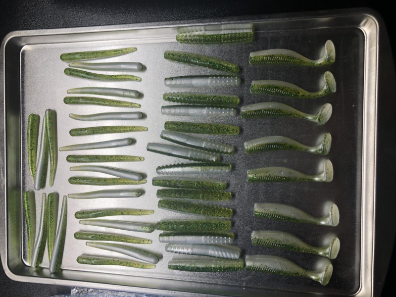 | Description: 6oz plastic each Top: 10 drops lureworks watermelon, .015 and .040 kelly green, .015 black and.008 silver glitter Bottom: 2 “dash” lureworks white pearl and a “pinch” of sparkle pearl (I use the measuring spoons from Lurecraft) Picture Stats: Views: 1363 Filesize: 205.19kB Discussion Topic: View Topic Posted by: Canga~ Rating: This picture has not been rated yet.