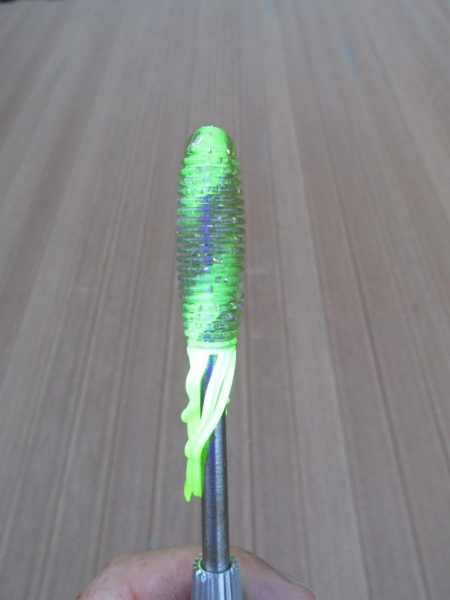 No, this one did not drive me crazy like the small coiled core in the ES Smokin Shad... this candy core (which is designed specifically for tube baits) is almost as easy to shoot as the standard E-core is with solid body baits. Sure, fabricating the copper sleeve takes a little more time than simply cutting a rod, but once it's done, tube baits such as these can be made with almost no flaws.