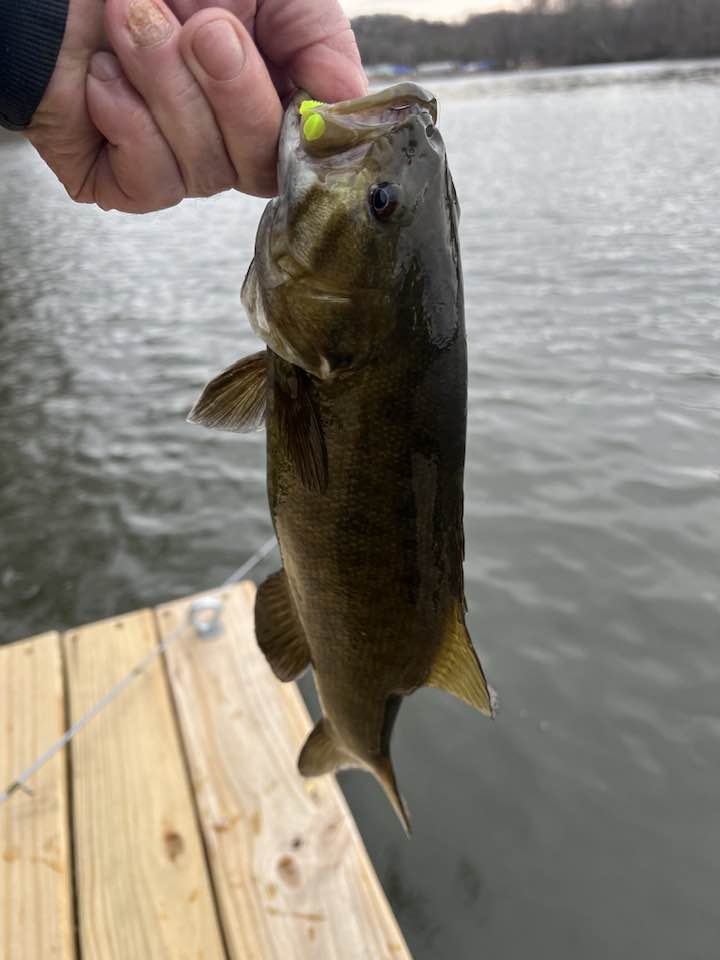 Especially when the bite starts off with some serious shallow smallie action with fish like this one in the picture. I caught seven like this in 15 minutes this morning and number 8 broke me off. Only about 2 to 2-1/2 feet deep on rocky shoreline Ater getting re-rigged I dropped the knot to fish deeper, about five feet, and was instantly rewarded with a super crappie bite that was still torquing when I left. With 8 very nice 12" fish in the bucket I called it good and came home.