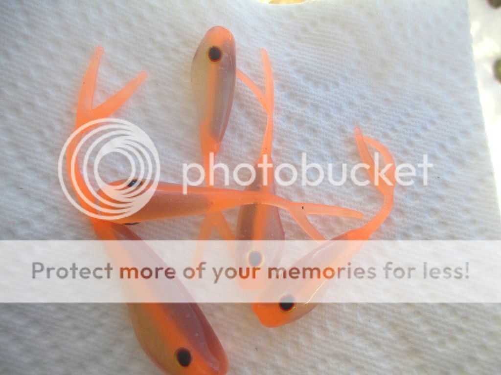 Here are some orange baits done in the same fashion as the firetail and chartreuse from the last couple days. Its fun seeing how that center color works into the outside colors. The belly color and back colors are the same re-melts while the orange is a bear's color that is a little lighter than the X2 fl.orange and can make a big difference in how the bait handles light. In this case its a nice splitting color.