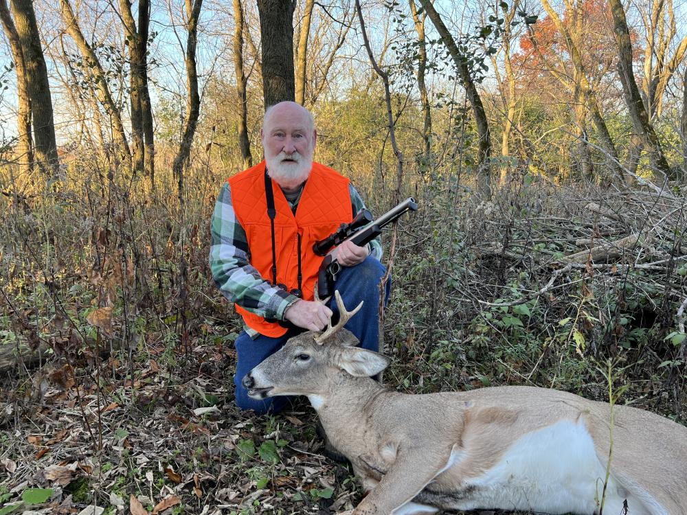 I took this one with my black powder pistol at 62-64 yards and it dropped on the spot. I also took a doe with a new-to-me smokeless muzzleloader. I have enough meat now to do some sticks, summer sausage and cut-muscle jerky. There's something just really rewarding in hunting with the pistol and taking a crafty animal like this deer is just.... it. I spend half of my hunting days using the rifle and the other half toting the pistol and this year they both went bang.