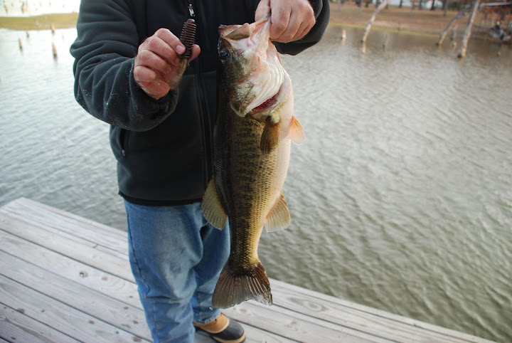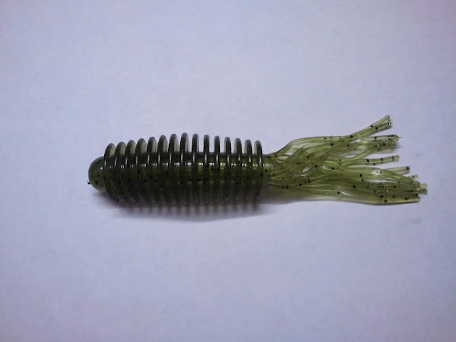 Here is a picture of a Bass I caught today on the Ribbed Tube.  I tried it Texas Rigged and on a Jig as a trailer.  I had quite a bit of luck with it as a jig trailer.