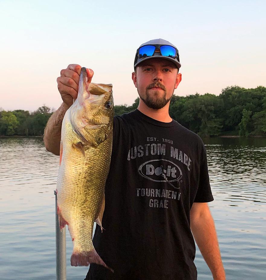 I have been fishing our local Tuesday and Thursday night derbies each week. The offshore bite is where it's been happening lately with our water temps in the 80's now in Iowa. I can never seem to get a good draw, launching second or third to last each derby. My big fish spots were all taken up by the time we launched, so rather than pounding the shoreline like the rest of the boats, we slid off to some uncharted territory. Upon arrival, some great structure started to appear on side imaging and it was loaded with fish. We spot locked and I did my best to determine where to pitch my bait to run parallel to the down logs in 13ft of water. My bait of choice was a 1/2oz Football jig rigged with a black and blue Berry Bug. Jig hit the bottom and I may have drug it a total of five yards before it was inhaled by a 5.14 pounder.
