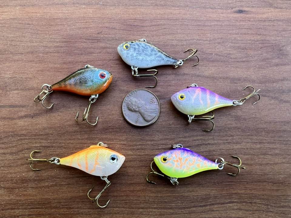 And these lil flat side baits are murder on the large crappies during the same time-frame. The orange on pearl in the lower left is an Ultra-light Rippin Rap. The others I airbrushed on blank baits. And they all hammer nice crappies. I don't think I have put a crappie smaller than 11" in the boat using thse guys.