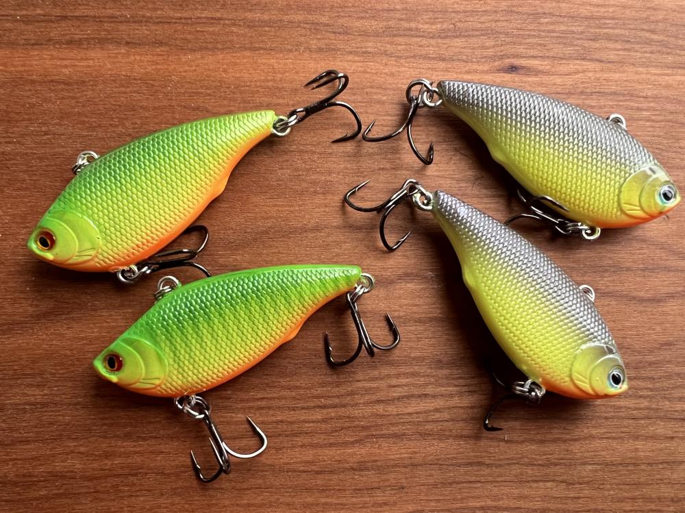 These guys are done using Do-It’s #8630 lipless bait 3/8 ounce bodies. All paints are bait blast, just not straight single colors. I’ve combined colors to get what I want. The perch has Attack Series