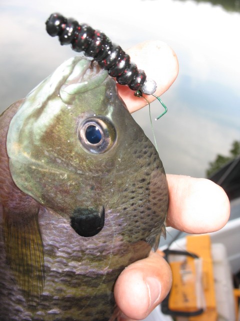 A thin tail was added to a different color grub body and caught this decent perch: