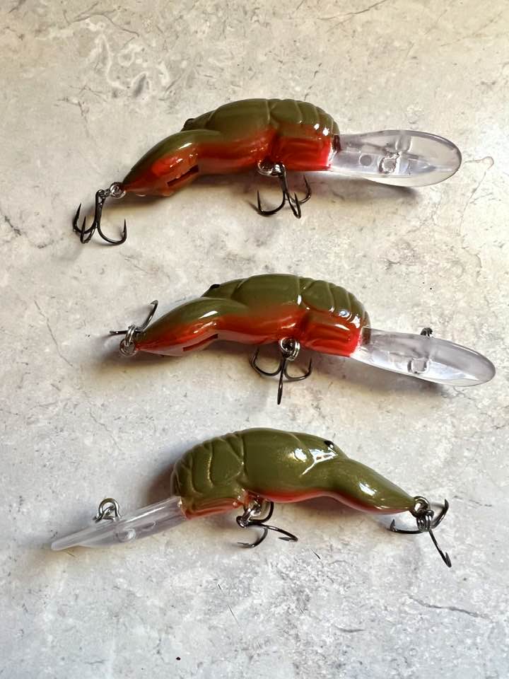 Here are a couple crawfish I sprayed up yesterday. Without the hooks, they are 3-1/2" in length including the bill.