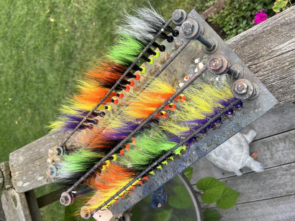 …. So I’ve been casting, painting and buried in buck tail lately, of course I got the casting wrapped up then discovered I was sorely in need of powder paint colors, then my bucktail stash came up short. I got these wrapped up and finally my box of goodies turned up Friday so I can get right back into things.