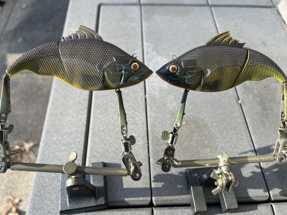 Some Bait Blast, some createx. The eyes are the Solar Shad, but I may swap them out for the Battle Bream.
