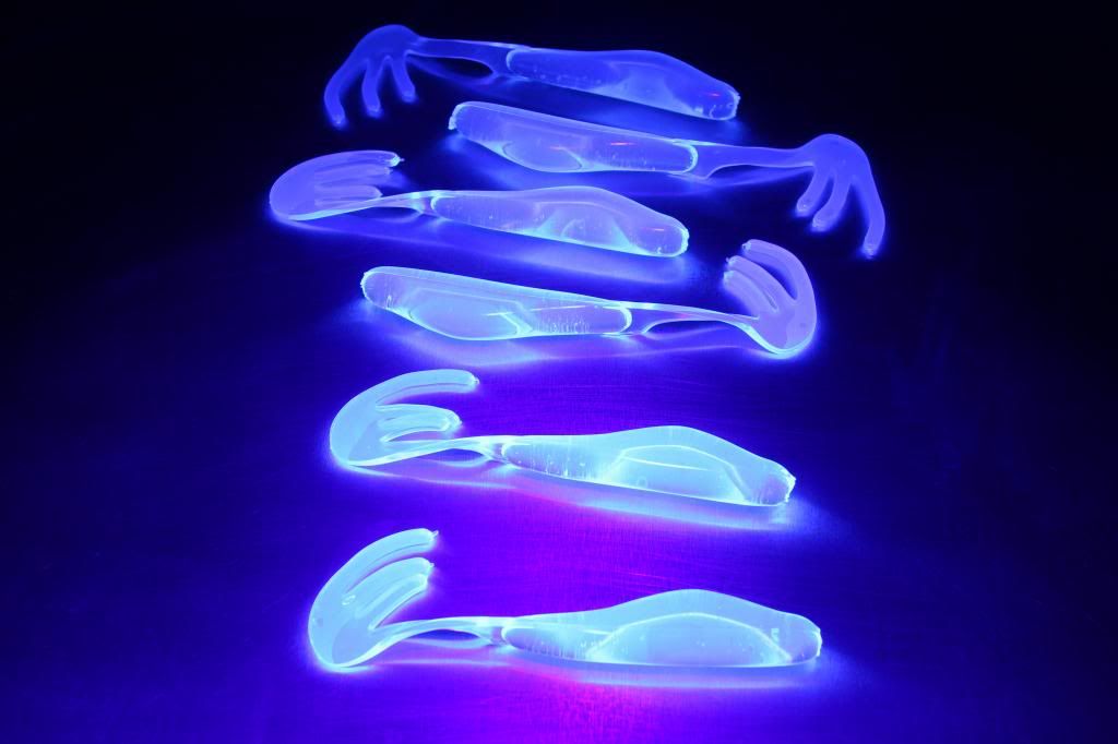 What was the dosage to get the glow in the first bait and the clear? Amt per, say, 4 ounces of plastic?