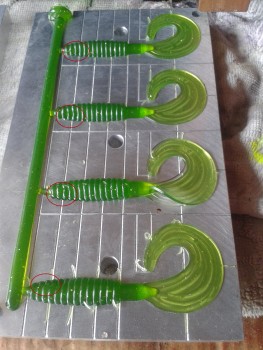 Common mistake in mold making , the channel can't be to big but it sure can be to small, great looking baits! The mold maker did a great job other than the small channels but if your not familiar with the characteristics of plastics they wouldn't of known any better.  Hope he gets her opened up a little for you