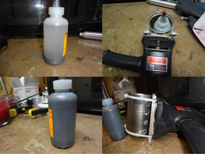 I took a soup can and an old palm sander to make a mixer for the colorants, WORKS GREAT!!! the only issue I see with this is, a can opener that cuts the outside of the seal would be better, or as I will do, is apply a small piece of pvc hose cut length wise to cover the sharp edge.