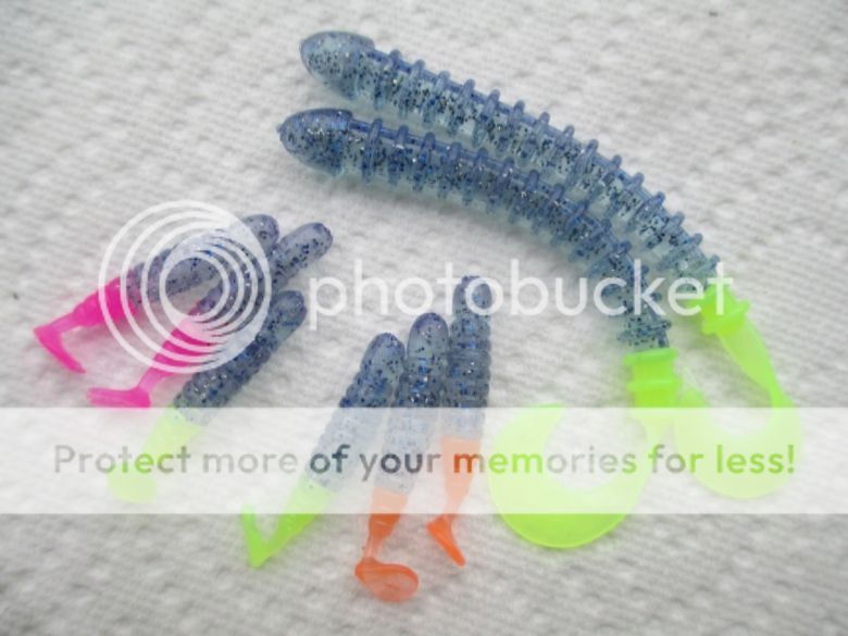 The Thump-Its in the three tail colors shot with this smoke have been absolute murder on crappies thru September and the days I have fished this month. I don't think I have put a purple anything on a jig all of October. The Ring-Its have been a hit with a couple walleye fishing buddies and while colder water temps generally dictate the walleye bit on plastic up here they have done well with the color shown in spite of the 56 degree water. As a rule, water temps need to dip below the 50 degree mark to get any serious attention paid to plastics while walleye jigging.
