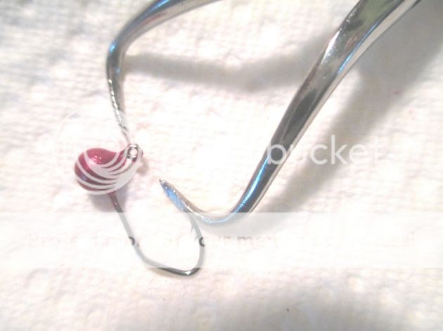 You need to be careful using anything with an edge on it inside the hook eye. I learned this by accident, I nicked the inside of a hook on a flipping jig using a 1/16" drill bit on my Dremel to clean the eye out. I didn't notice it but when I went to tie it on I could feel the spot that was nicked and it only took a couple strokes back and forth for it to cut the line, never did that again. Now I use a small scrap piece of .018" diameter wire and I heat it up and stick it through the paint, and I do this before I cure but when you use a fluid bed you don't get too much paint in the eyes.