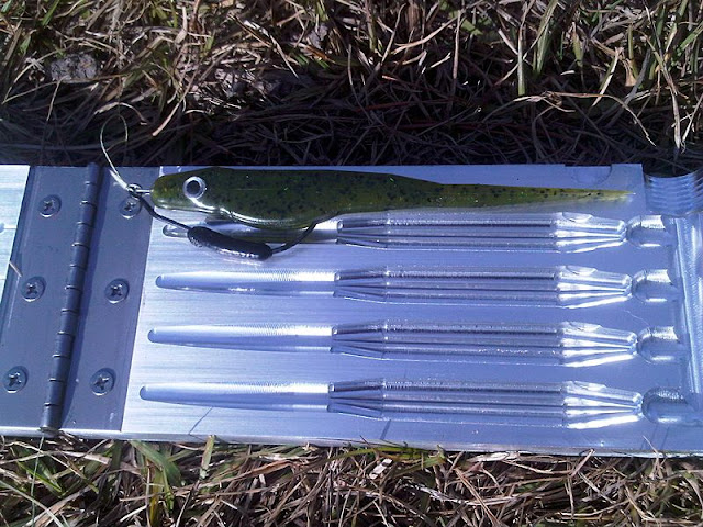 12) Jerk Bait 5" (4 cavity) - I am down to one final cosmetic tweak of the mold. This is going to knock your socks off. The baits are vertical in the mold so doing laminates by hand or injector will be a snap. It has a hook slot and place for eyes. This should quickly become a best seller.